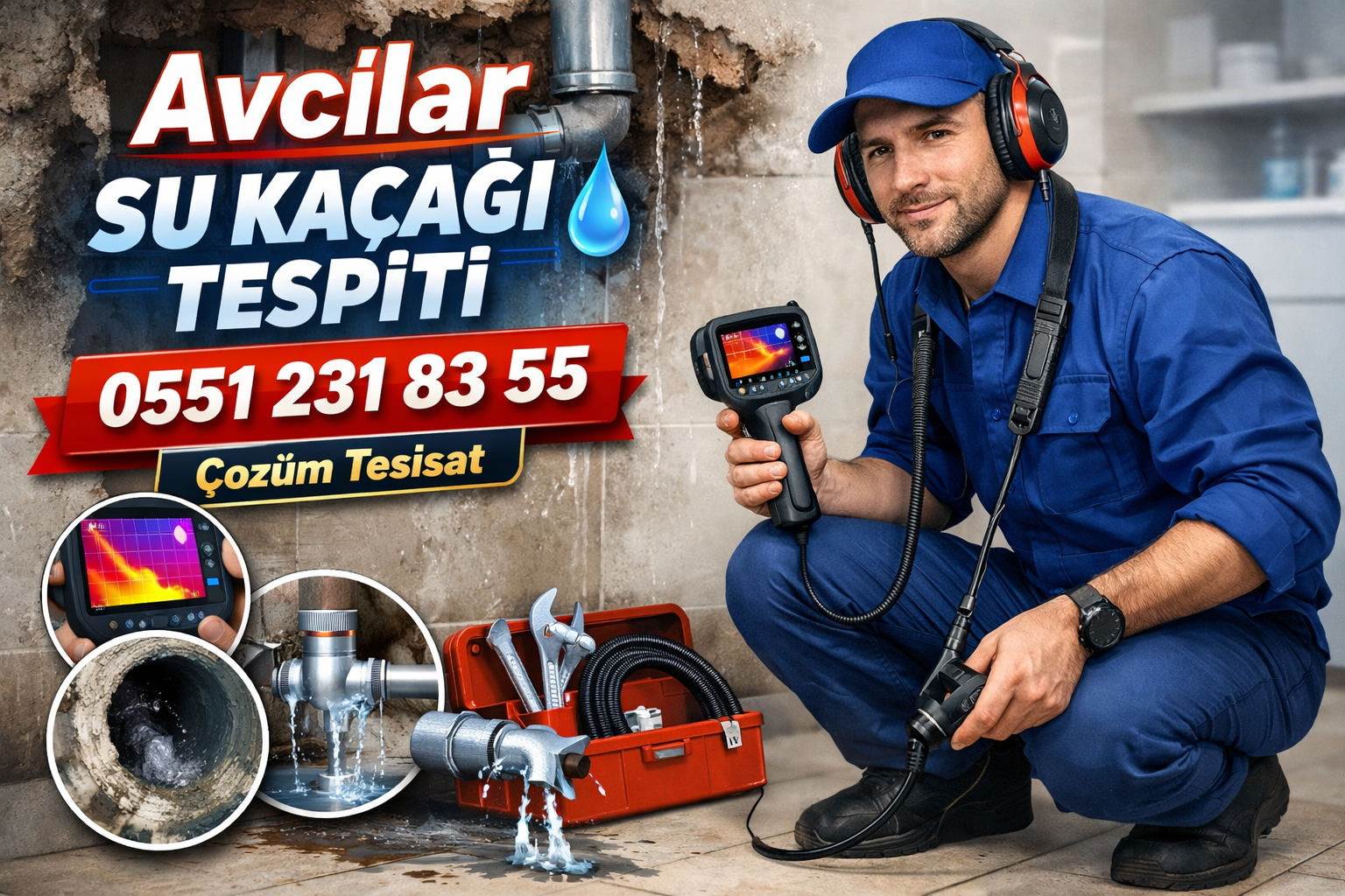 Su kaçağı tespiti Avcılar telefon numarası 0212 674 69 83 cihazlı su tesisatçısı avcılarda kameralı su kaçağı bulma fiyatı 99 TL en ucuz servis veren firmayız. Avcılar tesisatçı şubemizi arayın su kaçakları kabus olmaktan çıksın alt komşuya su sızıntısı var ise hiç bir yeri kırıdırmadan önce bizimle iletişime geçiniz.